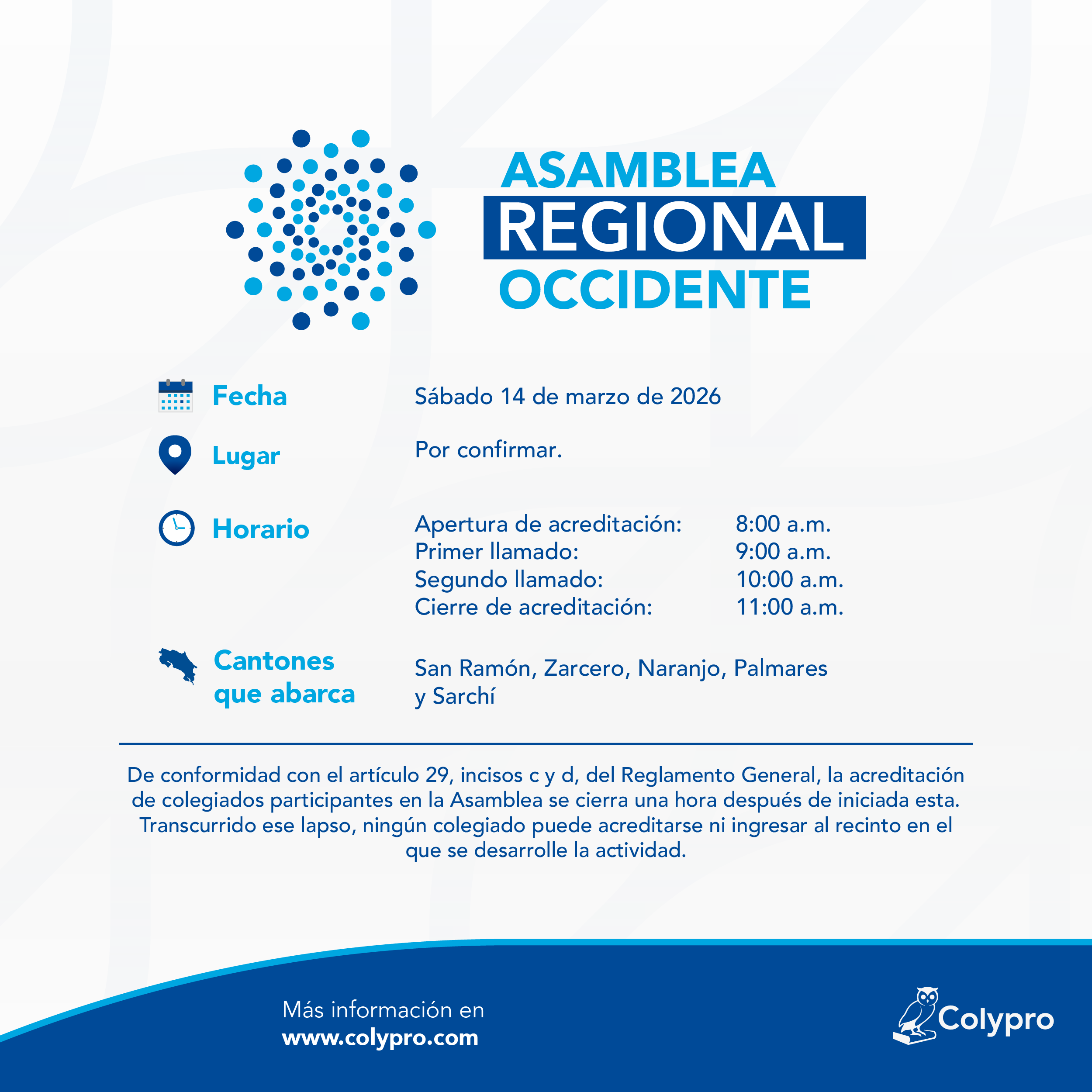 Revise el padrón electoral para conocer la regional en la que se encuentra empadronado: https://www.colypro.com/padron-electoral